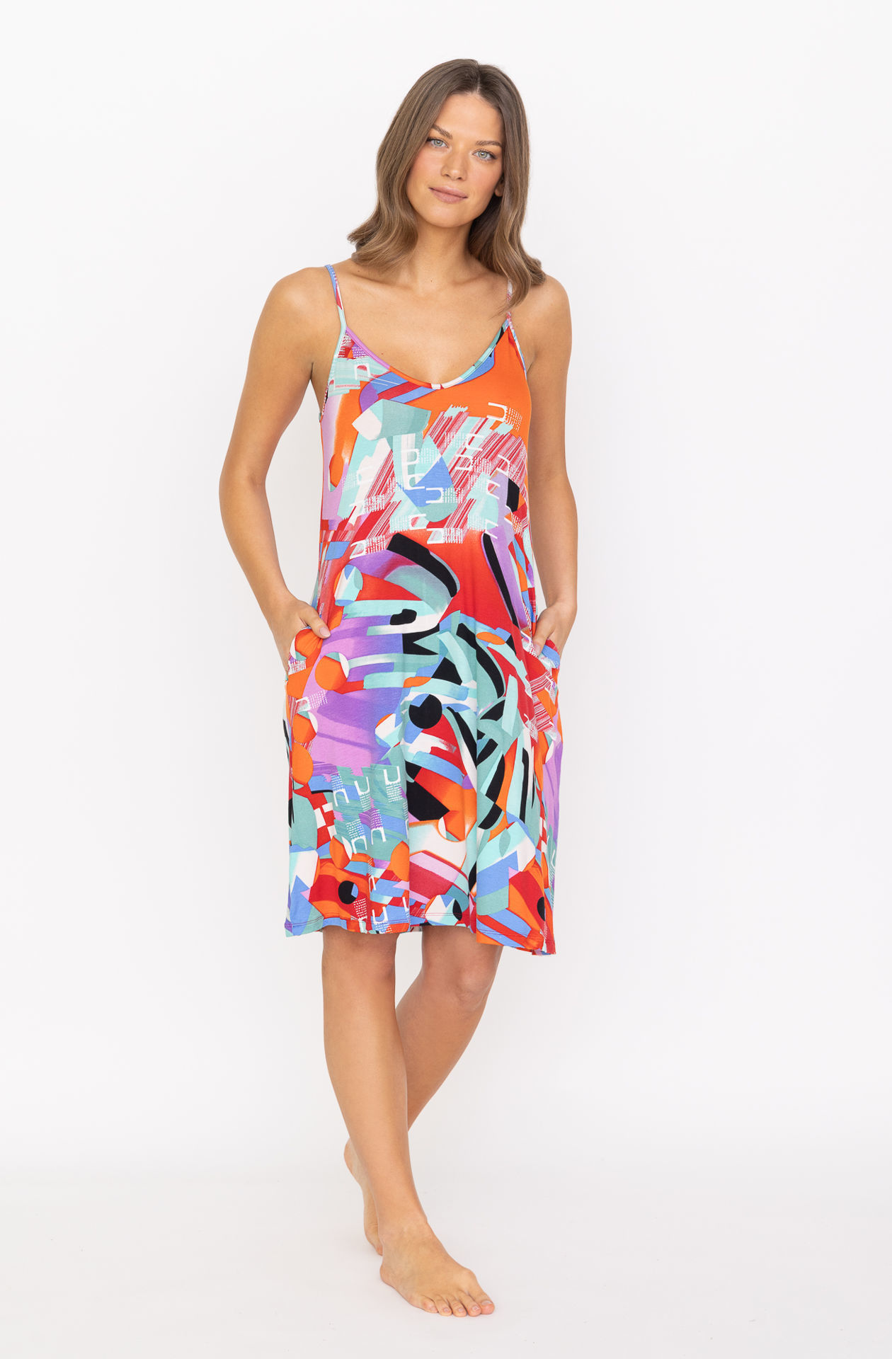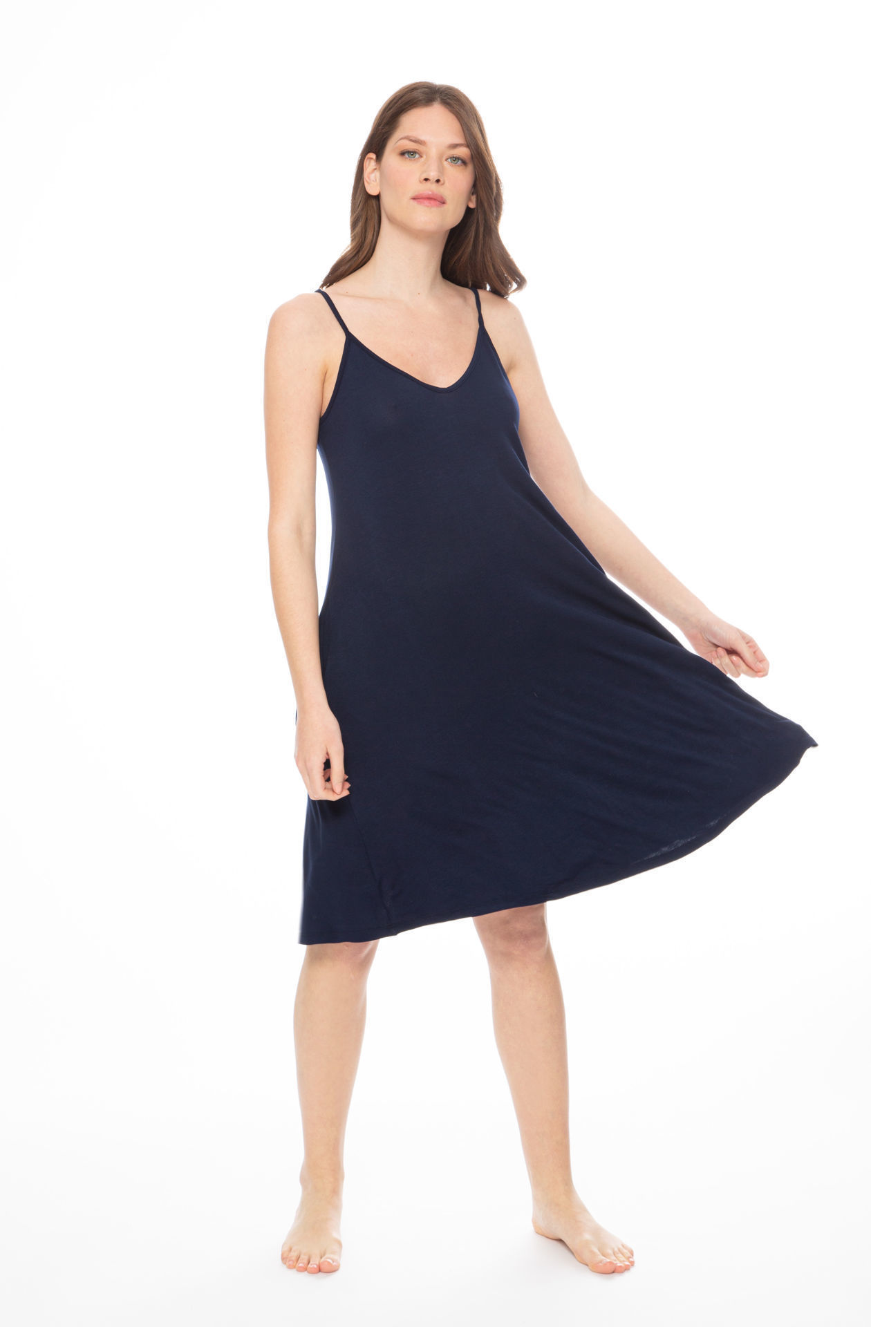 Ženska haljina na tanke naramenice A kroja